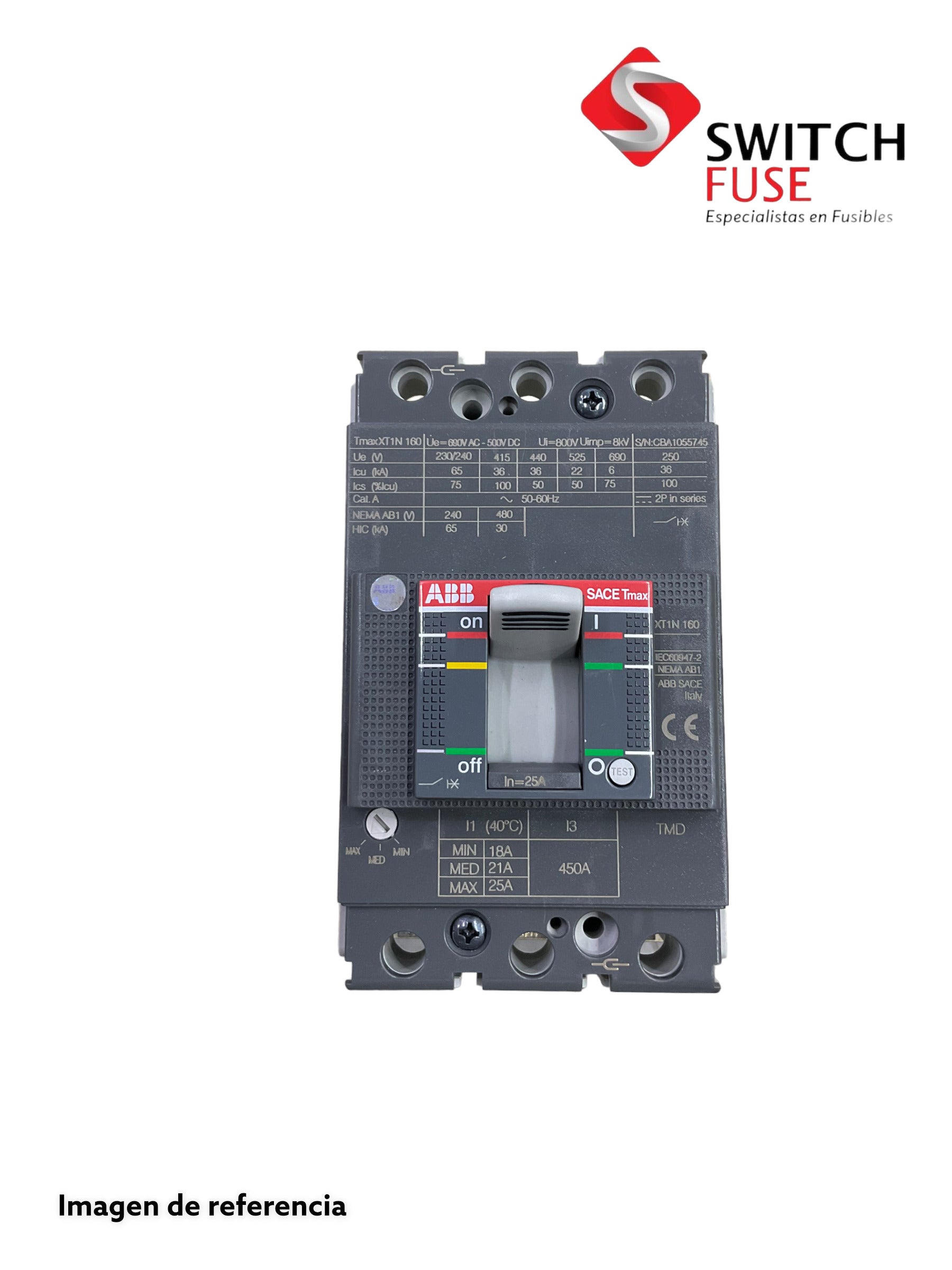 Interruptor XT1N trifásico marca ABB, cuenta con un ajustador de amperaje de