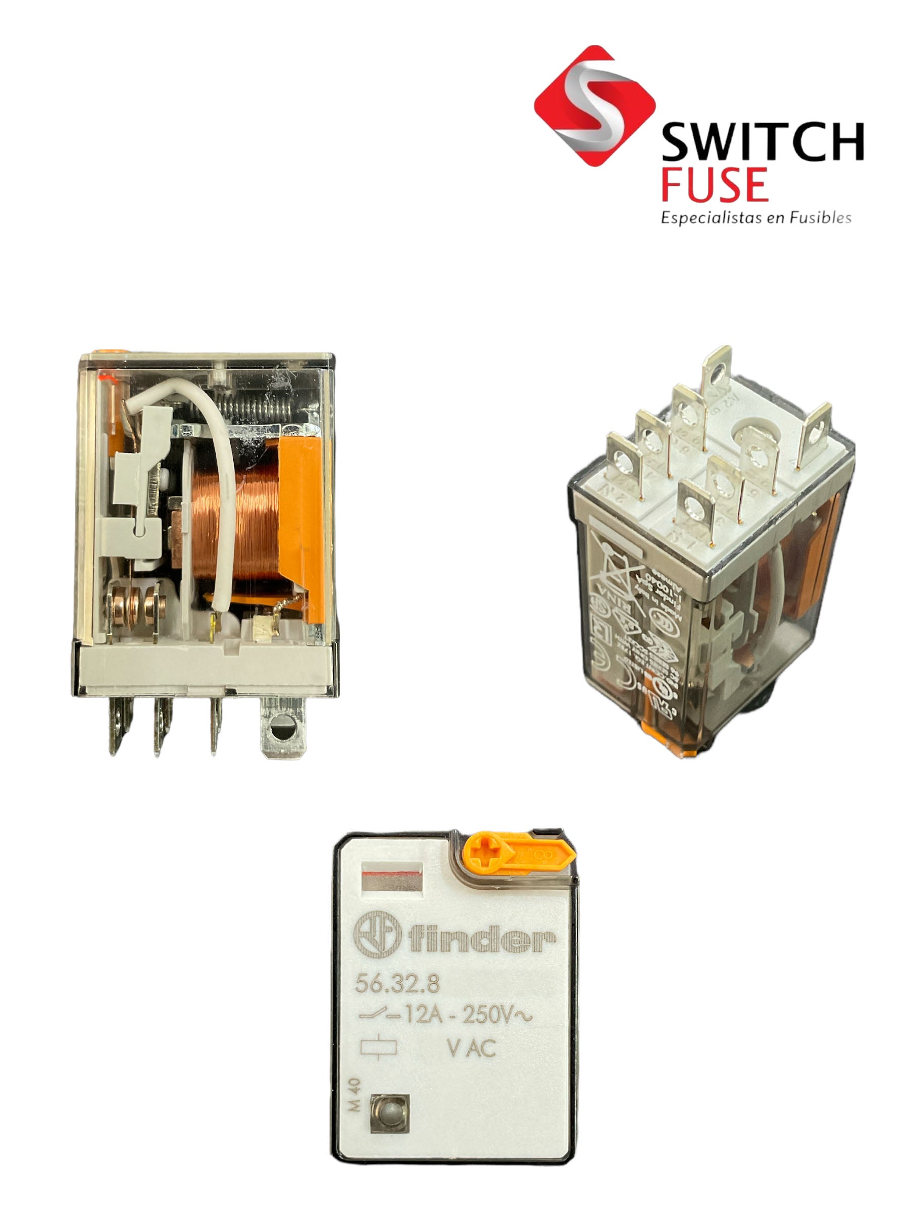 Relé de potencia tipo 56.32 12 A con 2 contactos para montaje enchufable en zócalo / Faston 187.
